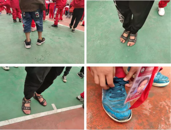 山區(qū)里的孩子過(guò)得特別貧苦,常常是一雙鞋子從夏天穿到冬天,有的還是家里的哥哥姐姐穿小了退下來(lái)的。大冬天里還穿著涼鞋,殘破的鞋子。