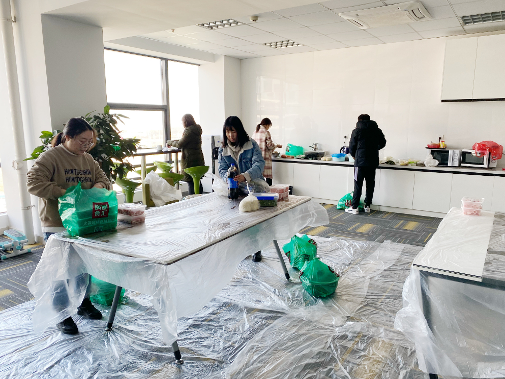 時間到了2月4日下午2點,公司的休閑區(qū)提前準(zhǔn)備了餡料,