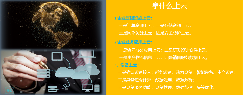 工信部印發《推動企業上云實施指南》中指出“企業上云應以提升企業發展能力、解決實際業務問題為出發點,通過將業務與信息化應用相結合,促進企業業務創新、流程重構、管理變革,加速企業數字化、網絡化、智能化轉型。
