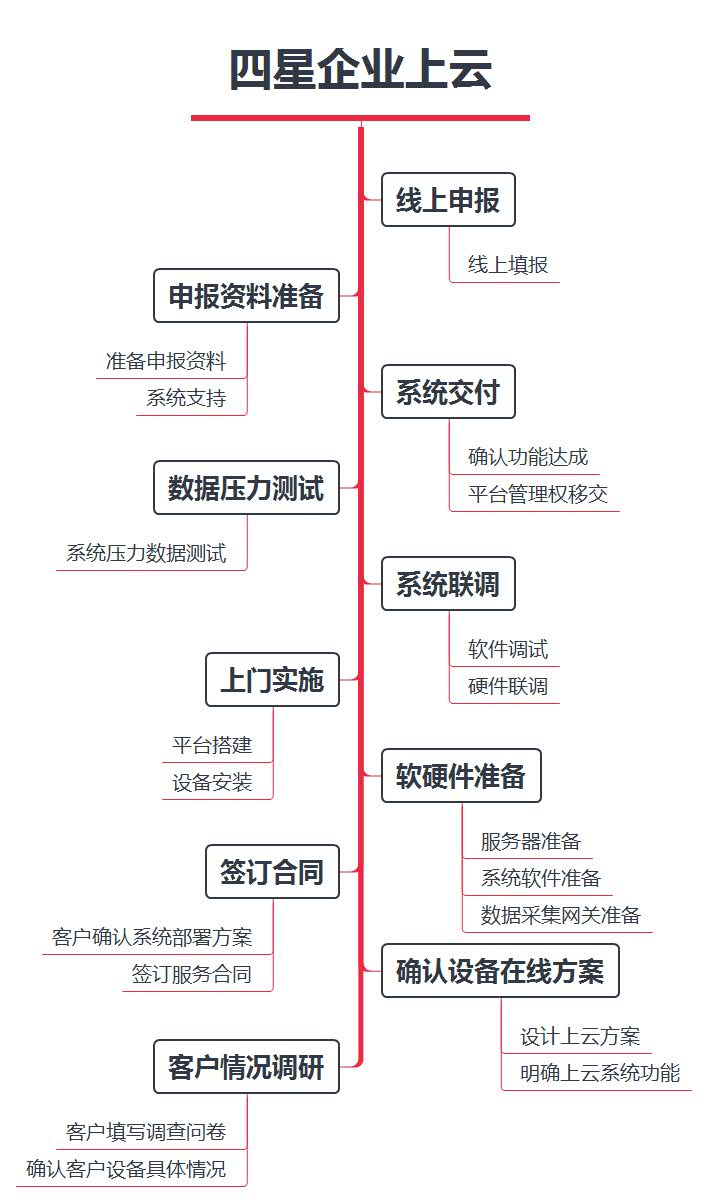 企業在選擇上云之前需要有一個完整的評估過程,首先是自身情況是否滿足,其次要有上云方案、明確上云系統功能,然后準備軟硬件并進行調試測試、再申報上云。
