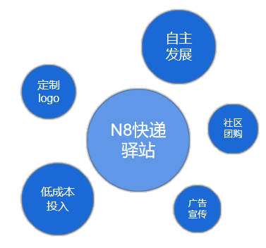 在菜鳥沒有整個市場之前,N8快遞驛站曾與小兵驛站、藍店等并駕齊驅,隨著阿里對快遞驛站上的布局,目前市面上形成了以菜鳥驛站為主,第三方驛站為輔的局面,這些驛站的加盟制度存在一些弊端:為加盟品牌做廣告宣傳、沒有主動權、受到加盟驛站體制或金錢的限制!N8快遞驛站不但解決了這些痛點,與之比較還有這些方面的優勢: