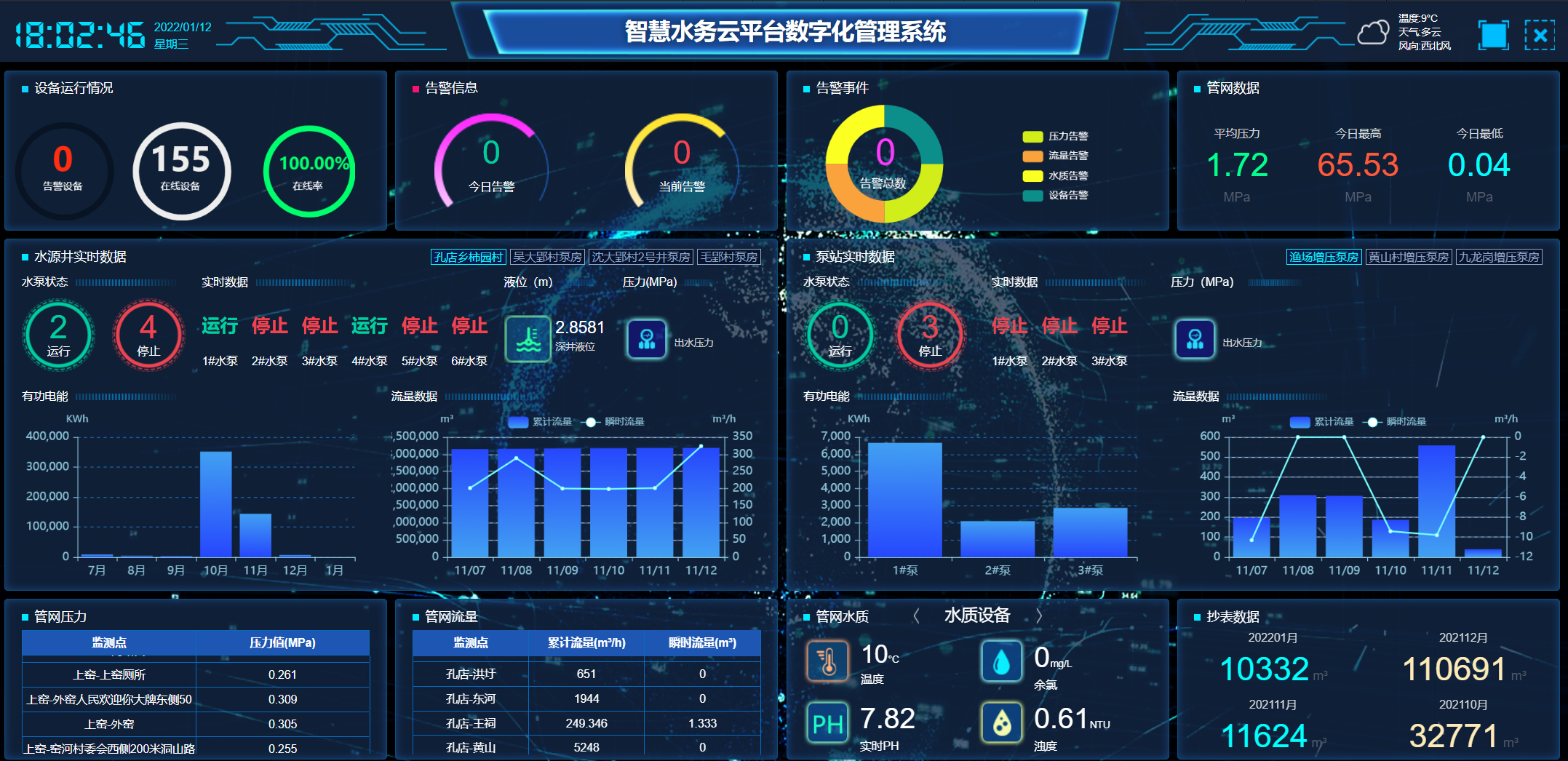 飲水安全,日常監管維護是關鍵。大通區智慧水務平臺系統可以有效監管該區13個水源井水廠,5個管網增壓站,以及58處管網供水情況,通過IOT以及大數據的新技術對設備運行、管網健康度等進行分析,確保供水設備、管路健康供水。當出現供水壓力不足的時候,自動遠程開啟增壓站,確保管網末梢供水壓力穩定;當管網出現破損水壓發生變化,系統平臺自動給運維人員推送報警信息,地點、管徑、影響區域都一目了然,大大縮短搶修時間,有條件情況下自動切換備用水源井供水,盡可能減少停水機會。。。。。新技術的應用就是為了保障,一切都是為了保障用水。