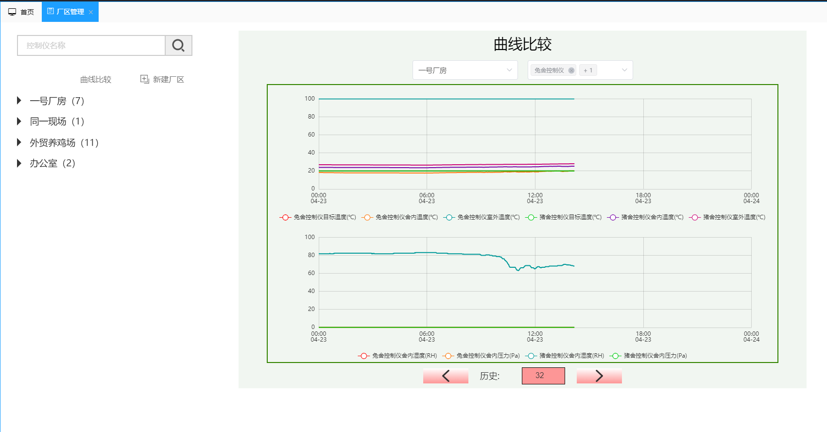 ※廠區(qū)管理:將所有設(shè)備按所在廠區(qū)進行分組查看和操作,設(shè)備和廠區(qū)可以自由綁定和解綁,且同一廠區(qū)下的設(shè)備可進行數(shù)據(jù)曲線比較。