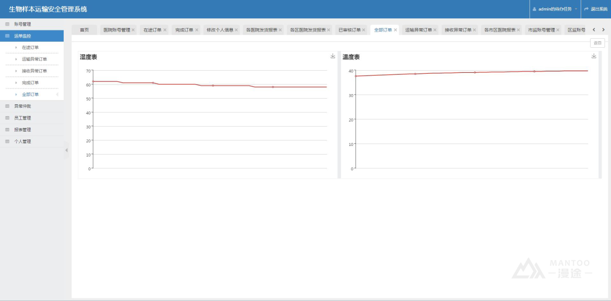 漫途科技提供這一套生物樣本運輸監控系統為我們企業解決了運輸箱環境溫濕度數據的實時采集、實時運輸路徑監控、運輸箱異常告警、遠程控制,運單管理等。實現傳統醫藥運輸管理向智慧化轉型,提高管理質量效率,產值大幅度提高。