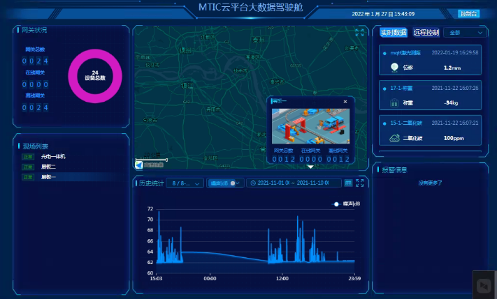 實時數據:支持各監測點位設備運行數據實時顯示,包括傳感器類別、編號、數值、時間、狀態等,支持單個設備參數歷史曲線查看;支持設備遠程下發指令控制設備啟停。