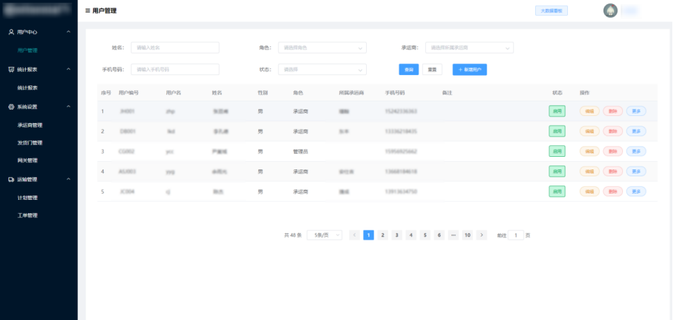 1. 人員管理:支持新增、編輯、刪除用戶等基本功能,并支持通過角色分配權限