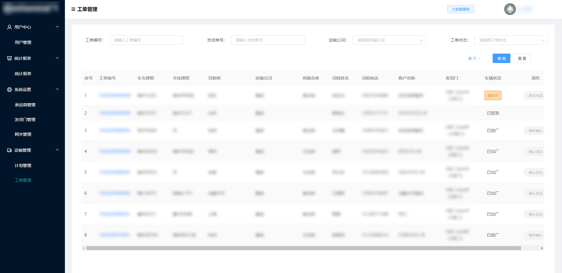 7. 微信端功能:承運人員對計劃和工單確認和管理;裝貨人員對裝貨流程確認;司機 簽到簽收管理