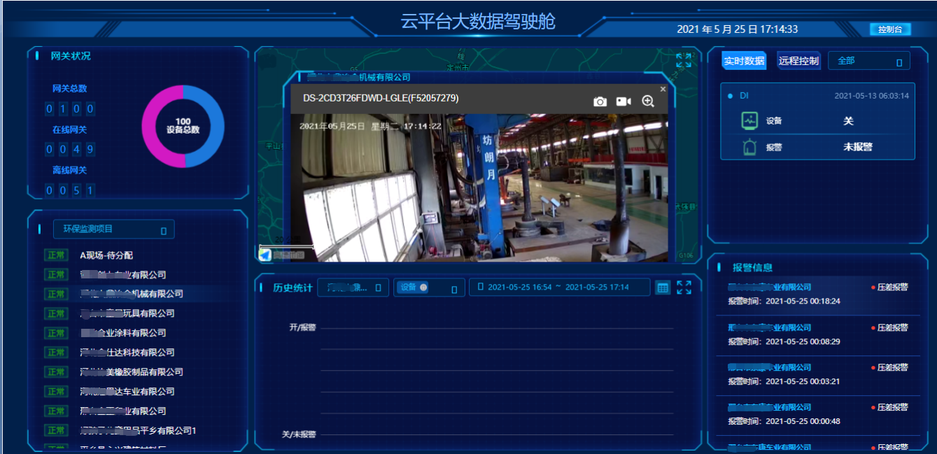 6)視頻監(jiān)控:可實時對企業(yè)生產(chǎn)活動進行監(jiān)控,視頻數(shù)據(jù)實時存儲在本地,本地可支持視頻數(shù)據(jù)存儲,存儲可以通過平臺和APP查看歷史數(shù)據(jù)。