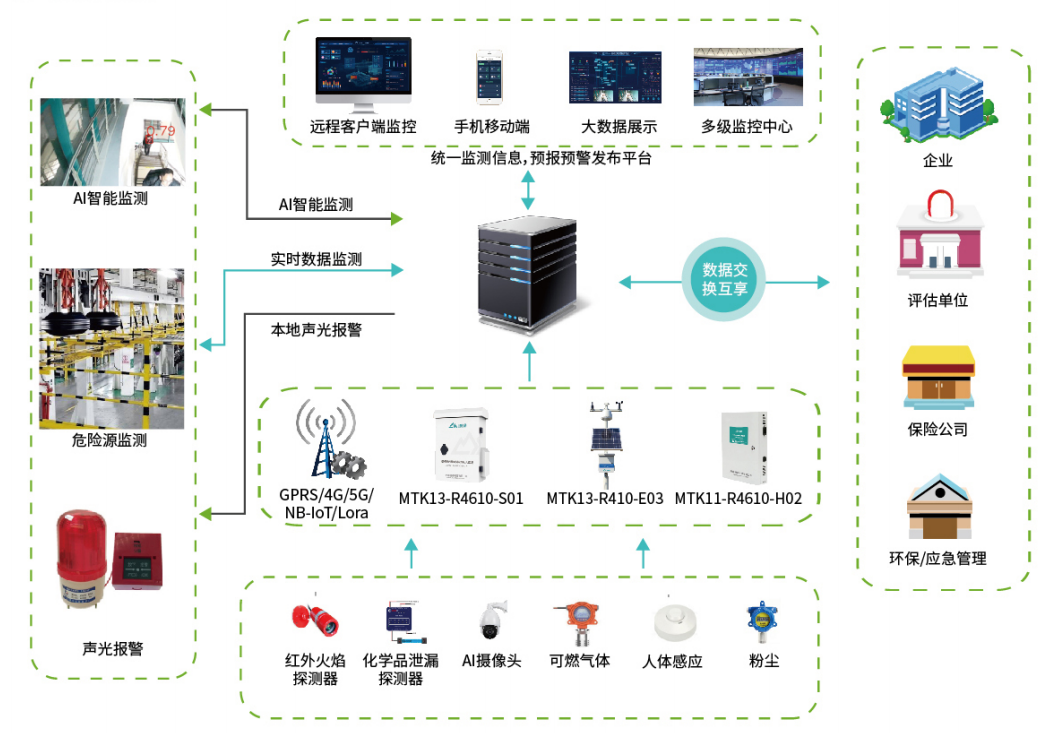 EHS-IOT safety online monitoring platform system, a set of Internet of Things based cloud platform independently developed by our company, is composed of MTIC cloud platform, MTIF ganglion unit algorithm, MTBOX intelligent terminal and various sensors. The platform provides a feasible solution for the enterprise's EHS digital transformation, and visualizes all kinds of data and presents them at multiple terminals.