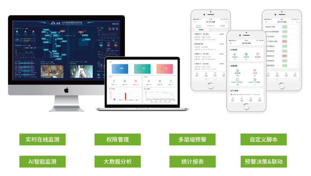 It also supports user-defined algorithm setting rules. Once the monitoring items exceed the limit, local audible and visual alarm will be triggered, and the alarm information will be uploaded to the cloud and pushed to the relevant responsible person. The alarm shall be handled in time and the personnel shall be in place in time. The system can also analyze data and generate reports periodically. Provide a set of practical management plans for managers to improve work efficiency and reduce work costs. Such as hazardous waste pool level monitoring, well cover abnormal opening monitoring, confined space monitoring, roof edge monitoring, fire safety monitoring and many other scenarios.