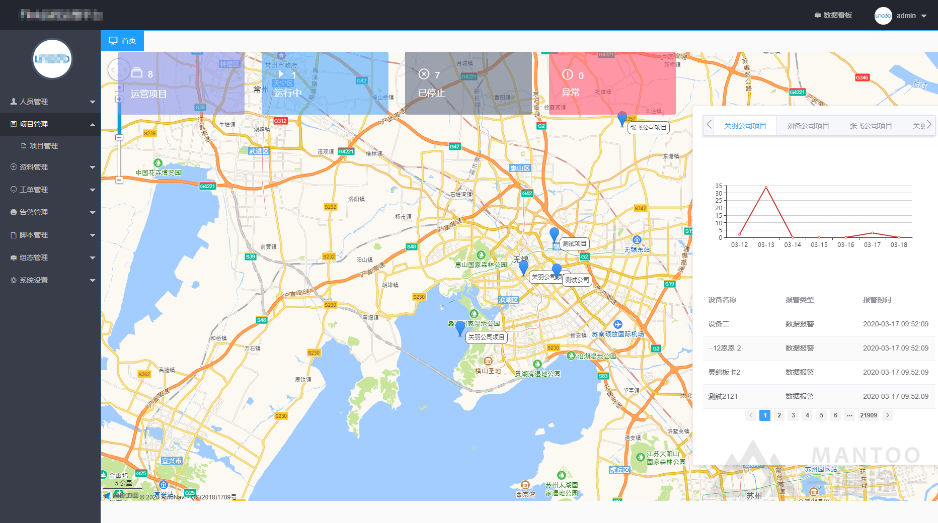 MANTOO, as an industrial IoT service provider with R & D and intelligent manufacturing capabilities in the Yangtze River Delta region, uses wireless transparent transmission and edge computing technology with intelligent acquisition terminals MT-R410 and MT-R4610 according to the needs of the equipment manufacturer. As the core of equipment and sensor acquisition and transmission, it has developed a remote operation and maintenance cloud platform system that integrates equipment online, customer management, and operation and maintenance management. This product helped the factory solve the real-time collection, analysis, early warning of equipment data, customer information management, online feedback of problems, online dispatching, and online disposal. At the same time, the platform and the enterprise were nailed down to achieve unified management. Reduce problem discovery time, improve operation and maintenance efficiency, and improve corporate service image.