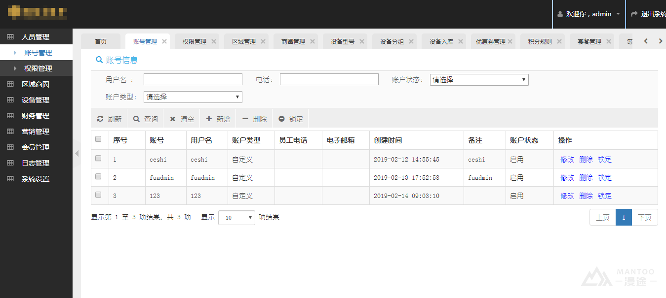 ※Permission management: multiple roles, roles can set different permissions, different role accounts login to see the background system is different.