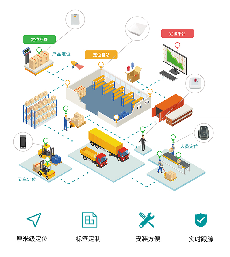 在工業4.0的物聯網體系中,高精度關鍵位置定位技術,是工業信息化智能化的重要組成部分。解決的是4.0時代工業現場供應鏈組件、生產設備車輛與腦體力勞動者精確定位的問題,是對生產組織過程智能分析、科學組織的前提。當前工廠生產車間主要的調度工具為行車及叉車,因為沒有有效監管,導致生產管理效率低下。在化工行業中,生產流程復雜,主要原料和產品80%以上屬于危險化學品,安全環保風險高。智能運維、安全生產等相關要求更是迫在眉睫。