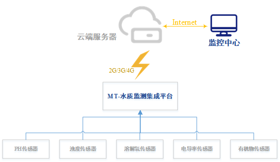 MTW400A水質(zhì)一體機(jī)是具有多傳感器數(shù)據(jù)采集、處理、報(bào)警、上傳云數(shù)據(jù)庫(kù)及本地實(shí)時(shí)數(shù)據(jù)顯示的飲水安全測(cè)控一體機(jī)。通過(guò)在蓄水池池水、自來(lái)水管道放置PH,濁度,余氯,溫度,溶解氧,電導(dǎo)率等傳感器探頭對(duì)相應(yīng)指標(biāo)進(jìn)行檢測(cè)并將檢測(cè)值發(fā)送給MTW400A設(shè)備,由MTW400A設(shè)備實(shí)現(xiàn)狀態(tài)監(jiān)測(cè)、自動(dòng)報(bào)警、顯示、校準(zhǔn)、數(shù)據(jù)上報(bào)、存儲(chǔ)等功能,由漫途MTIC云平臺(tái)實(shí)現(xiàn)大數(shù)據(jù)處理、分析等IoT生態(tài)系統(tǒng)。