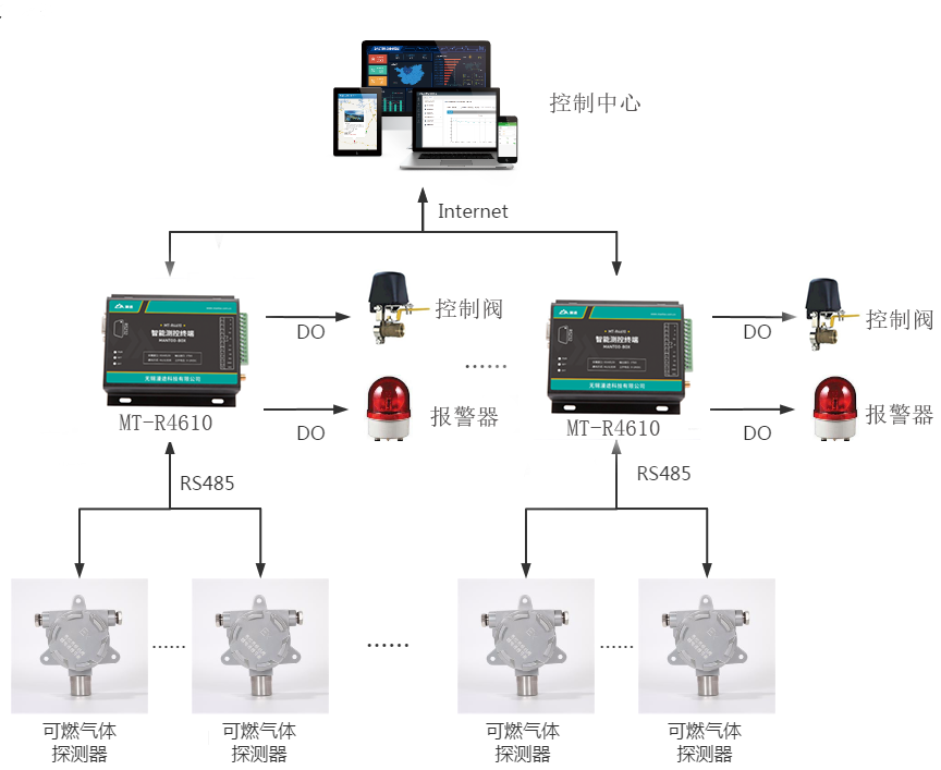 (1)硬件設備:4G網關(MT-R4610)、可燃氣體探測器、報警器、燃氣機械控制閥;