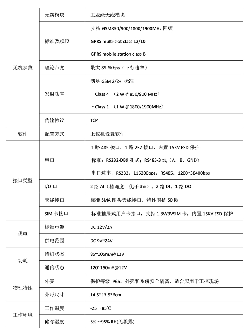 規(guī)格書 | M3314數(shù)傳終端設(shè)備(GPRS)規(guī)格書 |